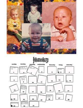 6. with all the pages in the right order, put a staple in the middle of the sheets between where the pictures and days are. this is sort of difficult, since most staplers aren't long enough to go into the middle of the page. you'll probably have to fold part of the calendar a bit to get it to the middle. after the staple is in, fold the calendar between the pictures and the days (where the staple is anyway). now you can flip through the calendar just like a vertical book! |